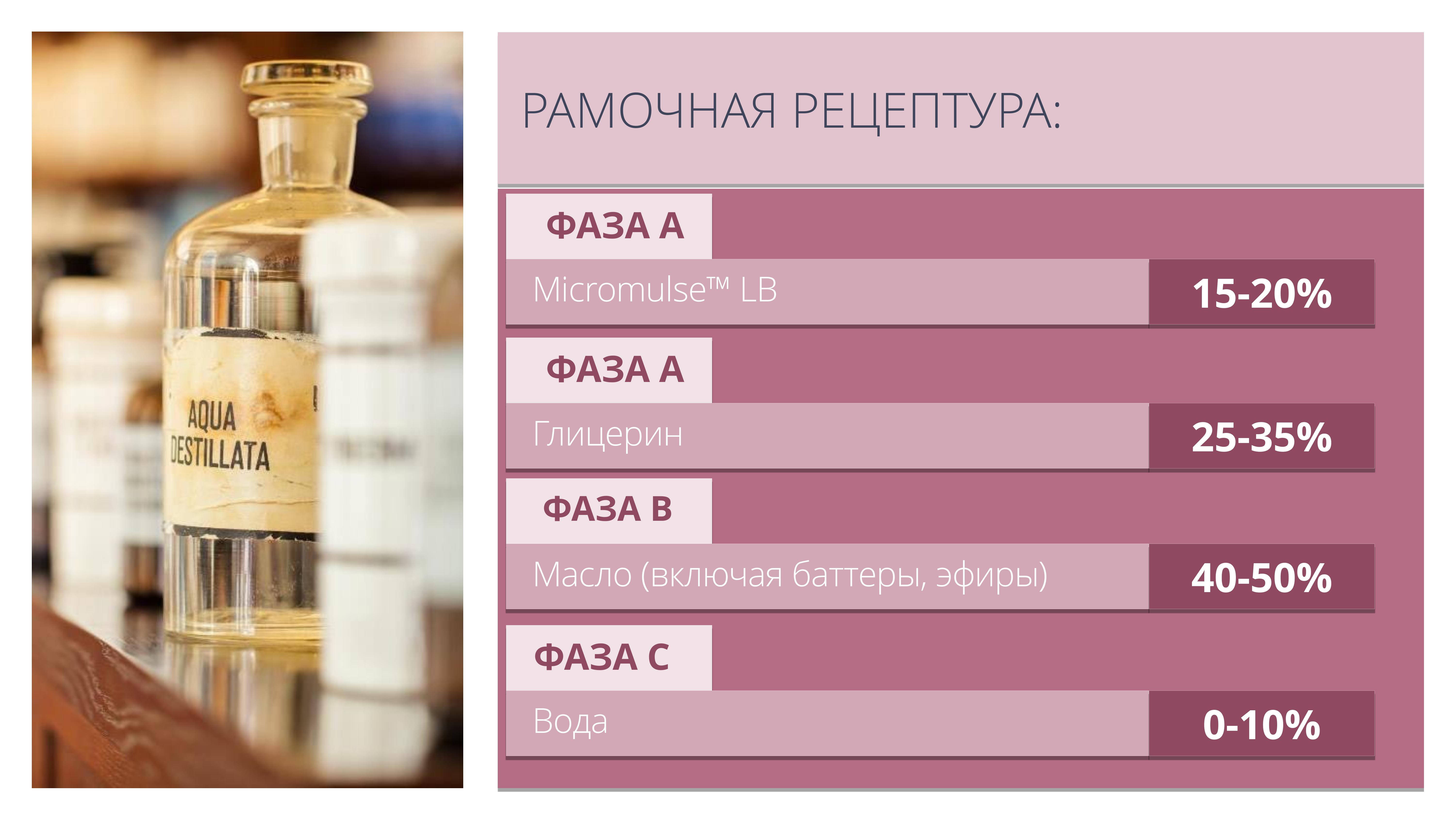 Продукты на основе Micromulse LB имеют высокую очищающую и увлажняющую способность.